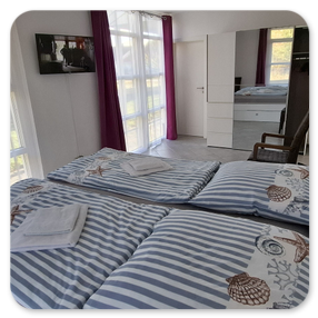 Zimmer und Ausstattung 4 Personen · 119 m² Wohnfläche, ebenerdig · bodentiefe Fenster · 3 x TV SAT - Wlan |