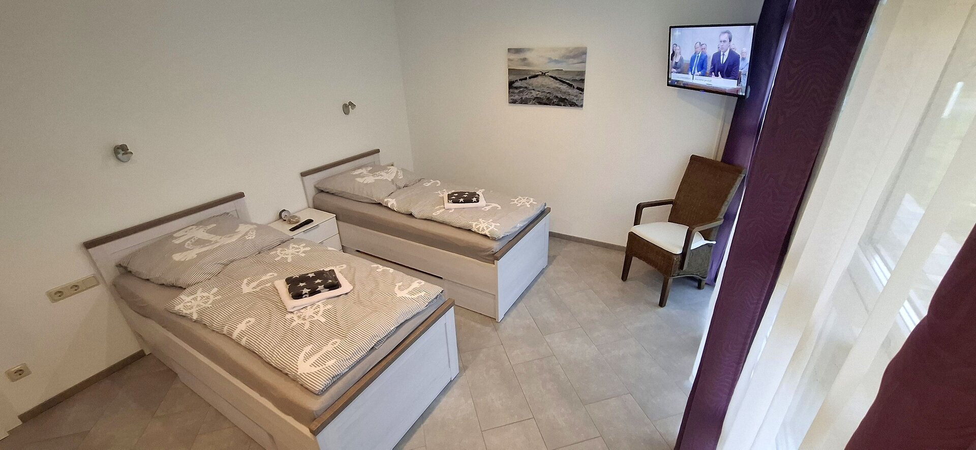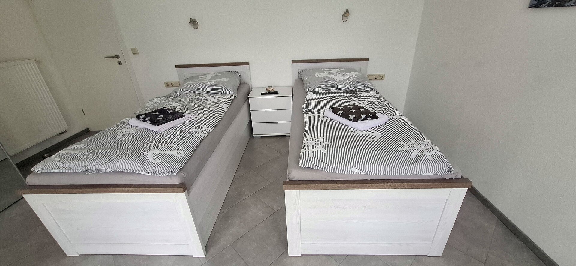 Schlafzimmer 1 Zwei Einzelbetten · Kleiderschrank · Nachttisch - TV |